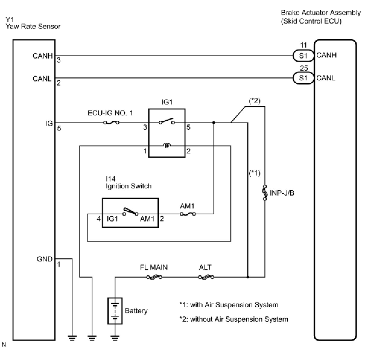 Brake actuator receives signals from the yaw rate sensor via the CAN communication system.
