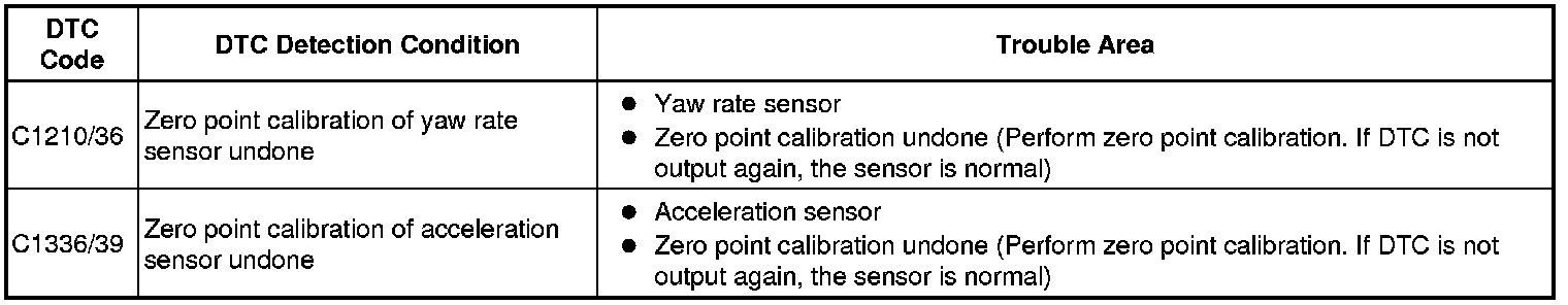DTC C1210/36 - Zero Point Calibration of Yaw Rate Sensor Undone
