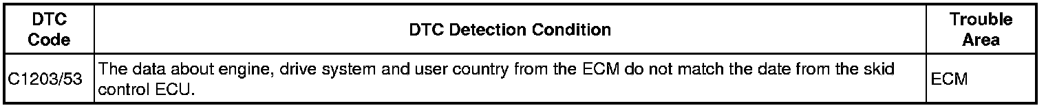 This DTC is output when the ECM information about user country does not match the skid control ECU information. In this case, the VSC system does not operate.