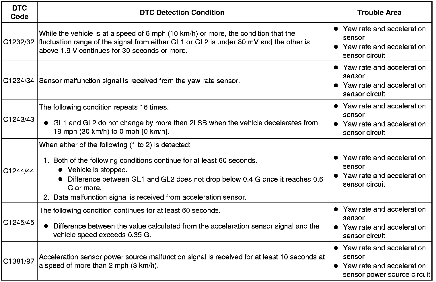 DTC C1245/45 - Acceleration Sensor Output Malfunction