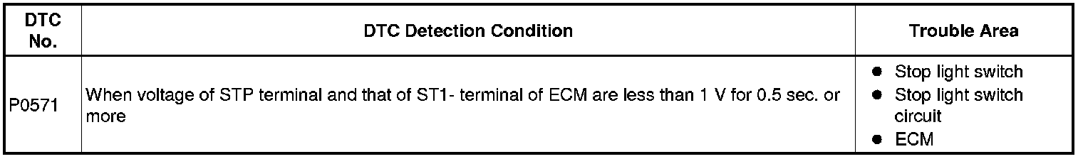 DTC P0571 - Brake Switch "A" Circuit