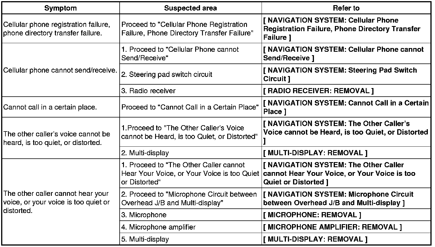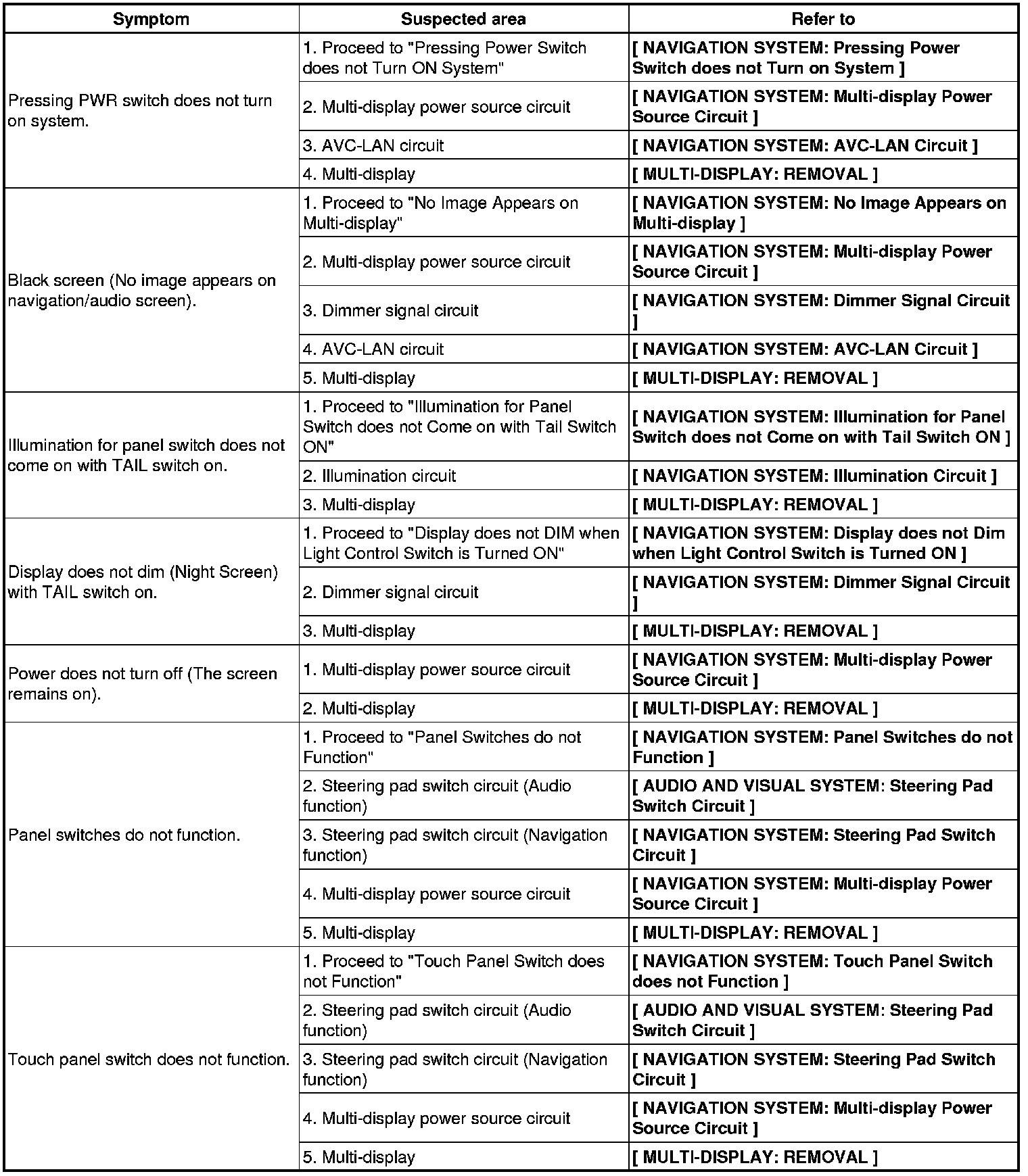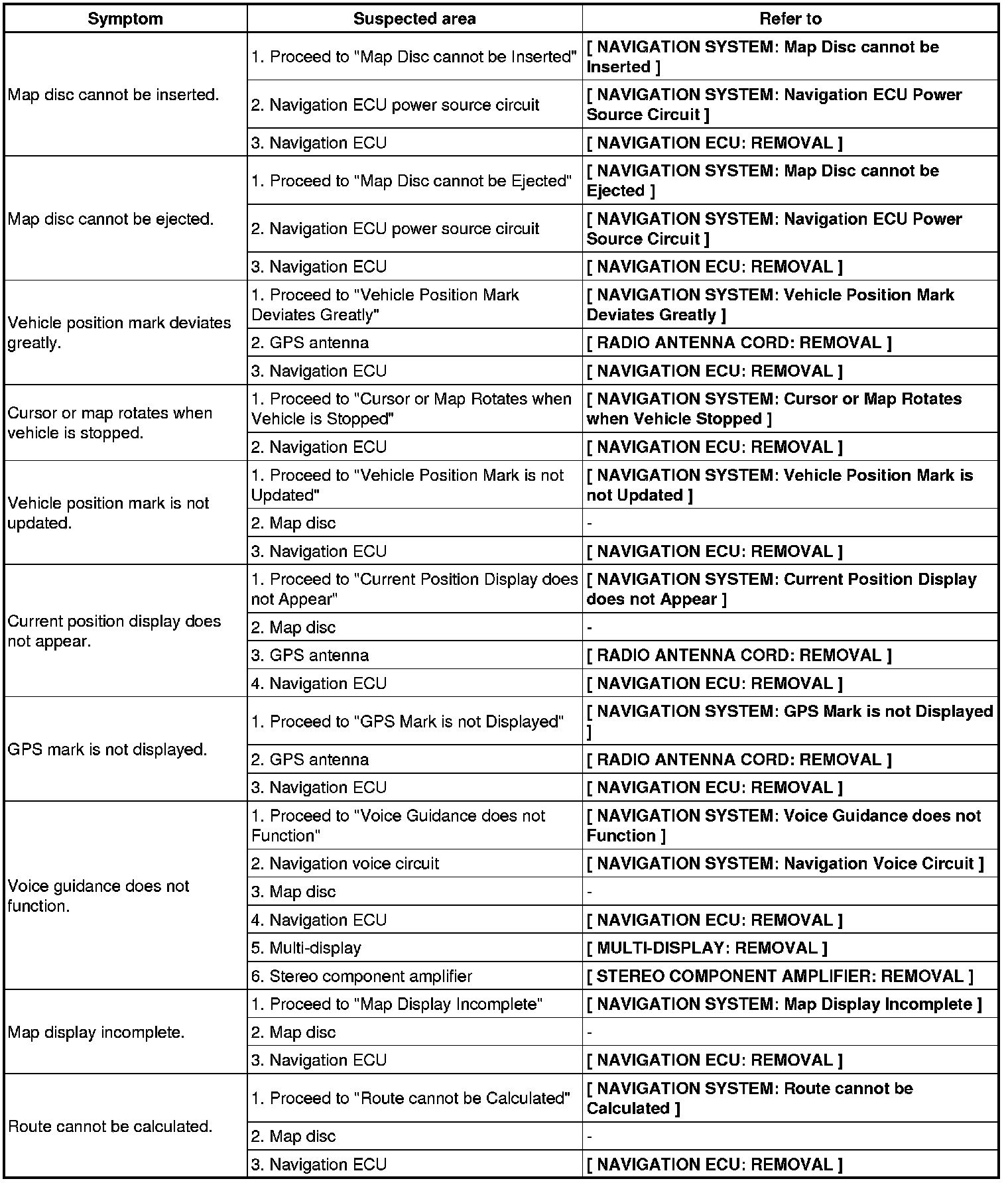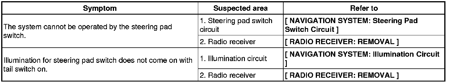 NAVIGATION: NAVIGATION SYSTEM: PROBLEM SYMPTOMS TABLE
