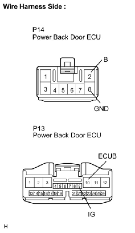 1. CHECK WIRE HARNESS (POWER BACK DOOR ECU - BATTERY AND BODY GROUND)