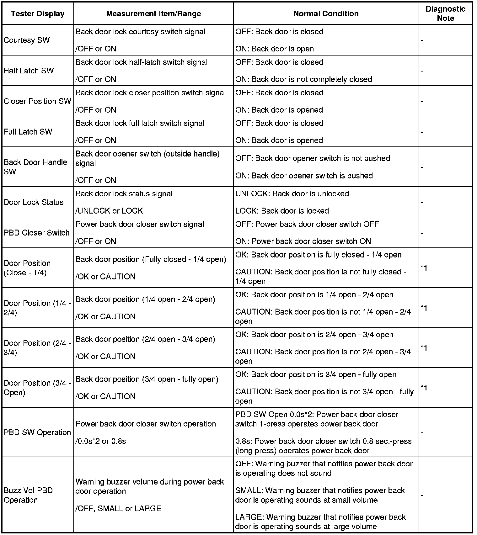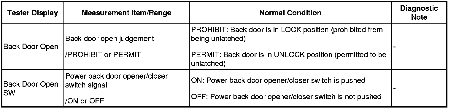 - *2: "0.0s" appearing on the display of the Techstream means that a 1-press of the satellite switch operates the power back door.