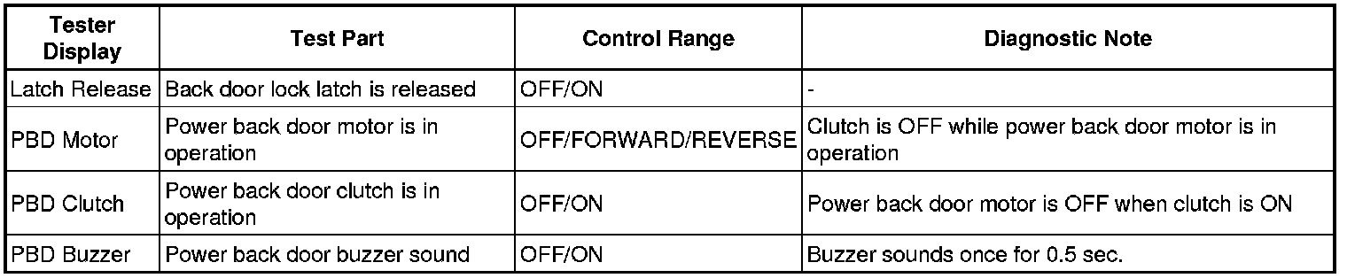 ENGINE HOOD / DOOR: POWER BACK DOOR SYSTEM: DATA LIST / ACTIVE TEST