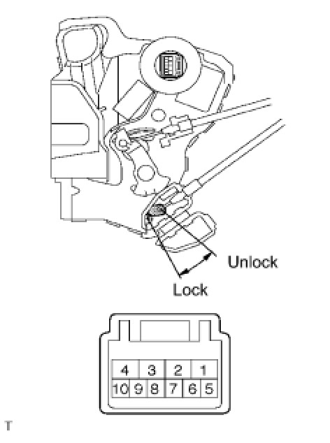 The driver's door unlock detection switch is built into the driver's door lock assembly. The switch turns on when the driver's door is locked and turns off when the door is unlocked.