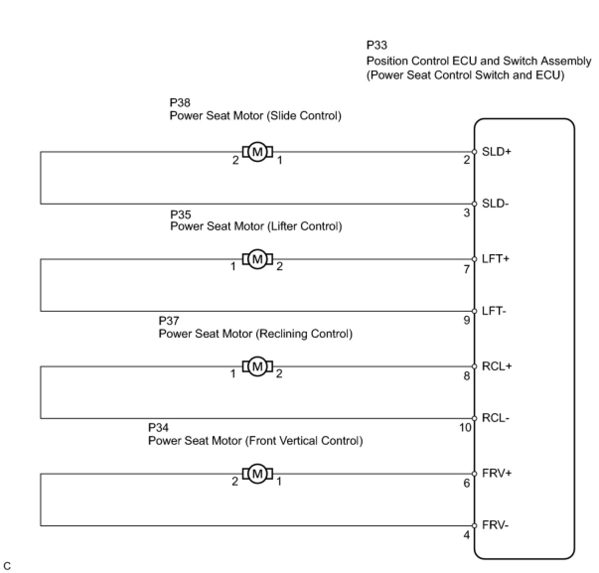 SEAT: FRONT POWER SEAT CONTROL SYSTEM (w/ Memory): Power Seat Motor Circuit