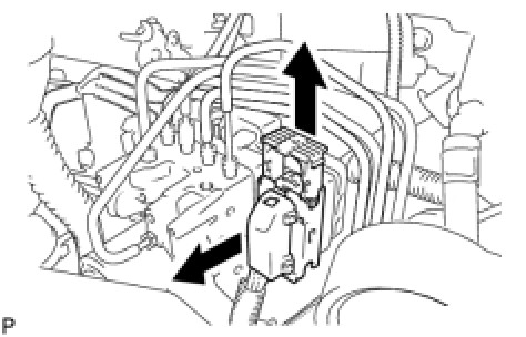 (b) Using SST, disconnect the 6 brake tubes from the brake actuator with brake actuator bracket.