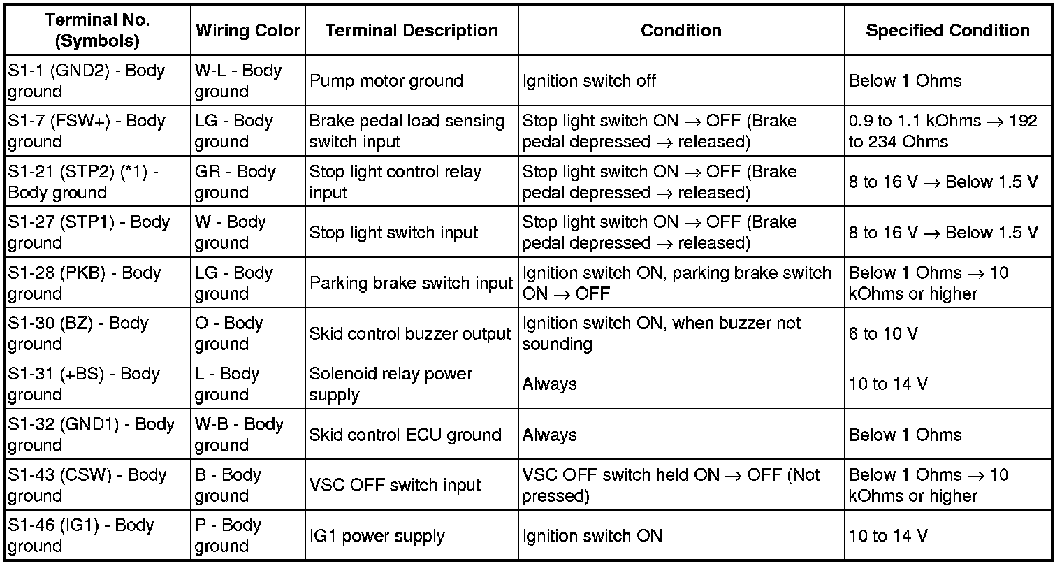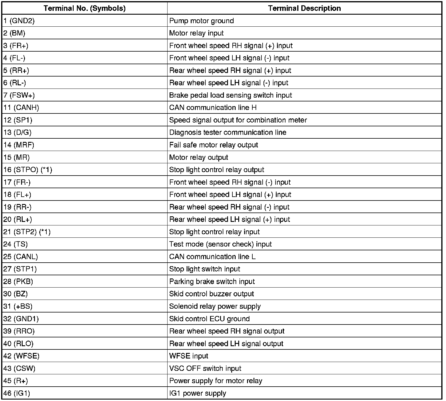 BRAKE CONTROL: VEHICLE STABILITY CONTROL SYSTEM: TERMINALS OF ECU