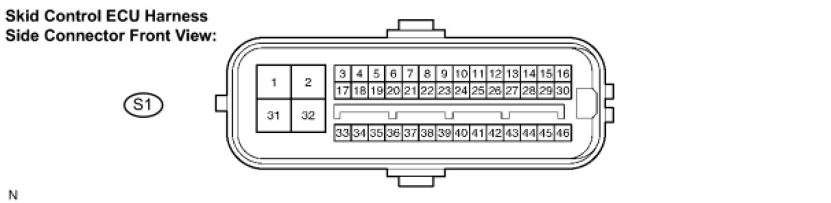 HINT: Voltage cannot be measured with the connector connected to the skid control ECU because the connector is watertight.