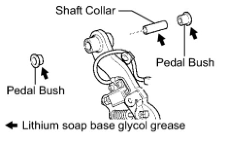 (a) Apply lithium soap base glycol grease to the ends and sides of 2 new brake pedal bushes.
