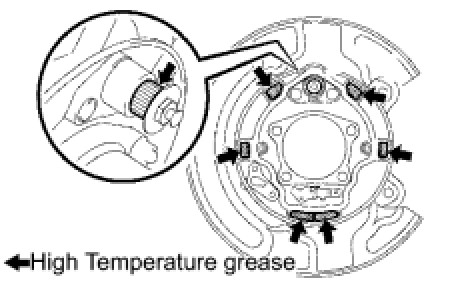 (a) Apply high temperature grease to the area the backing plate makes contact with the shoe.