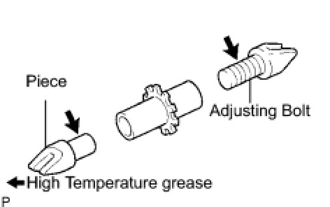 (a) Apply high temperature grease to the parking brake shoe adjusting bolt and piece.