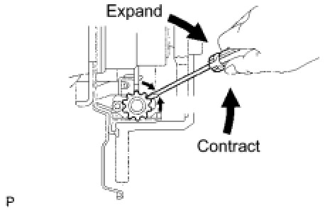 (b) Remove the hole plug, turn the adjuster and expand the shoes until the disc locks.