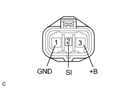 (2) Turn the ignition switch to the ON position. Check the voltage of the +B terminal of the disconnected wire harness side connector.