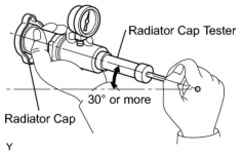 If the maximum pressure is less than the specified pressure for the minimum standard valve, replace the radiator cap sub-assembly.