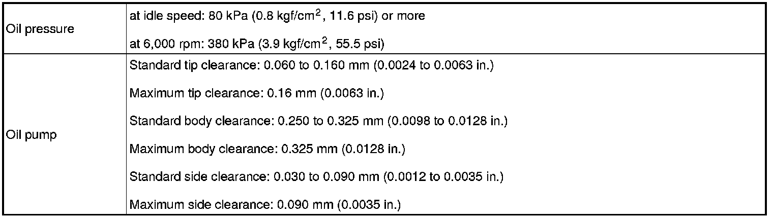 SERVICE SPECIFICATIONS: 2GR-FE LUBRICATION: SERVICE DATA