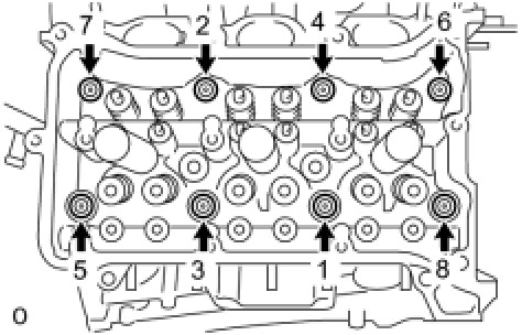 (d) Temporarily tighten the 8 bolts in the order shown in the illustration.