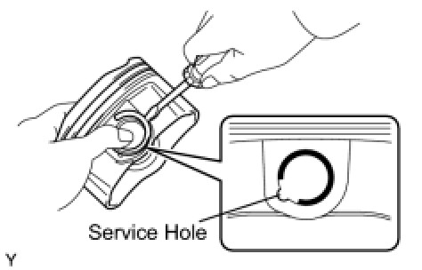 HINT: Be sure that the end gap of the snap ring is not aligned with the pin hole cutout portion of the piston.