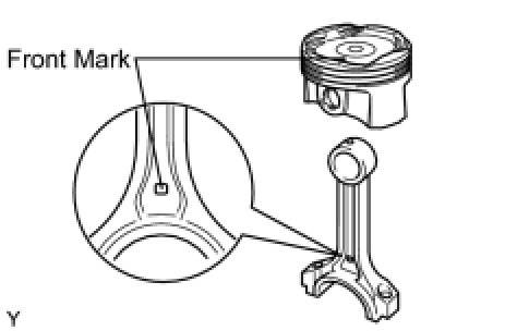 (d) Check that the front mark of the connecting rod cap is facing forward.