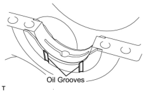- Both sides of the oil groove in the cylinder block should be visible through the oil feed holes in the bearing. The amount visible on each side of the holes should be equal.