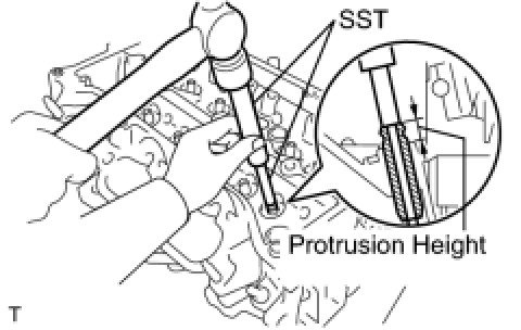 (b) Insert the tip of SST into the lash adjuster's plunger and use the tip to press down on the check ball inside the plunger.
