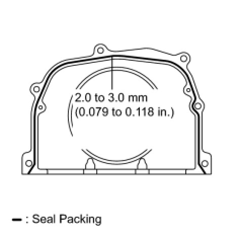 - Install the oil seal retainer within 3 minutes after applying seal packing.