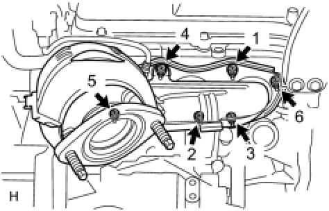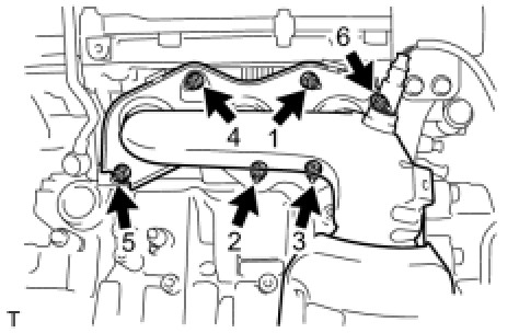 (b) Install the exhaust manifold sub-assembly LH with the 6 nuts in the order shown in the illustration.