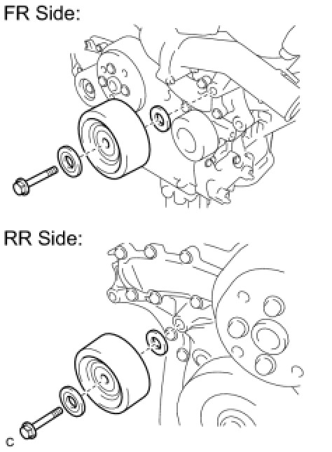 (a) Install the No. 2 idler pulley sub-assembly and 2 idler pulley cover plates with the bolt.