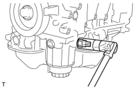(b) Using a 24 mm deep socket wrench, install the oil pressure switch.