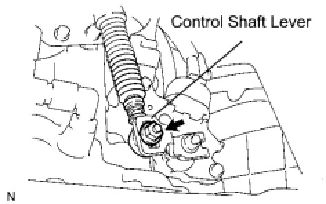 (b) Install the transmission control cable assembly to the control shaft lever with the nut.