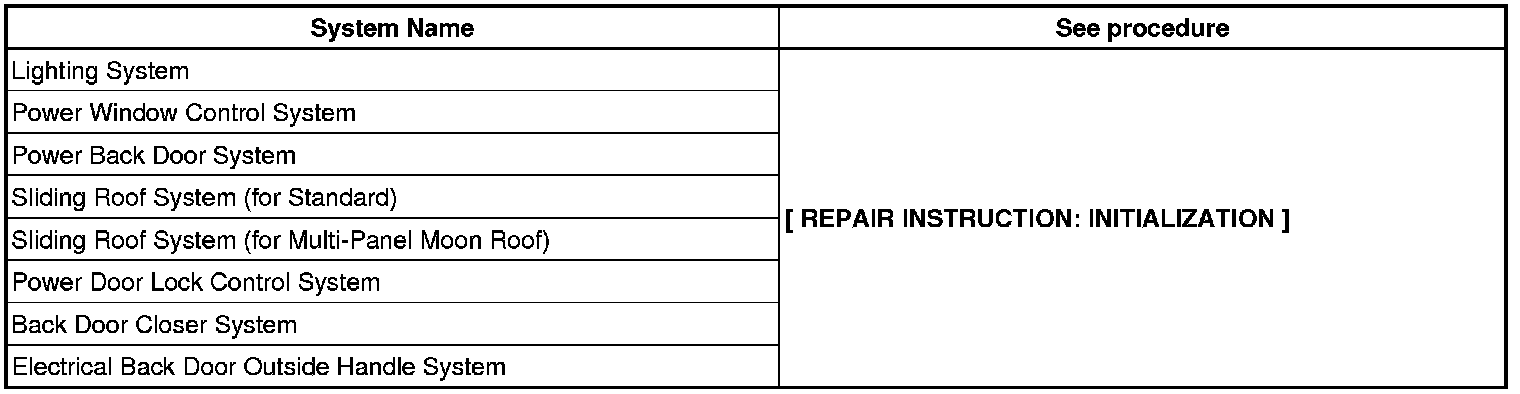 When disconnecting the negative (-) battery terminal, initialize the following systems after the terminal is reconnected.