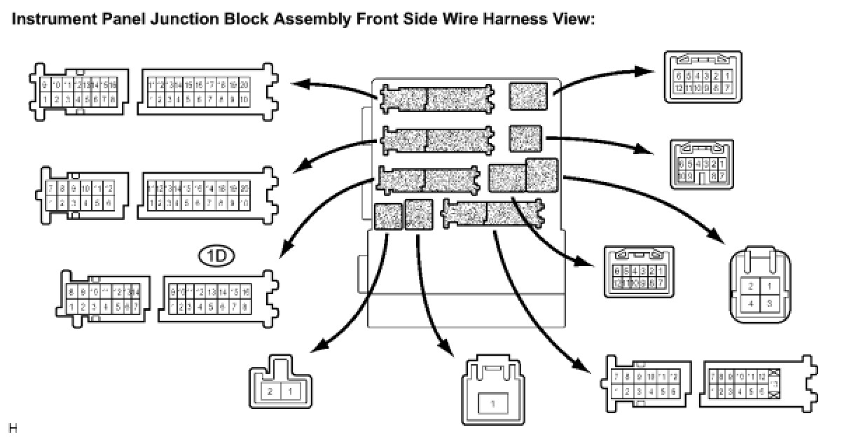 (a) Disconnect the 1D connector of instrument panel junction block assembly and the H17 connector of headlight beam level control ECU.