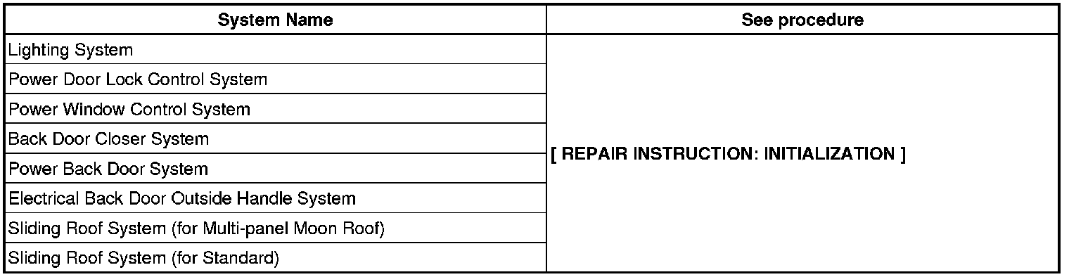 When disconnecting the cable from battery terminal, initialize the following systems after the cable is reconnected.