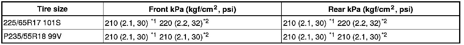 Cold tire inflation pressure: