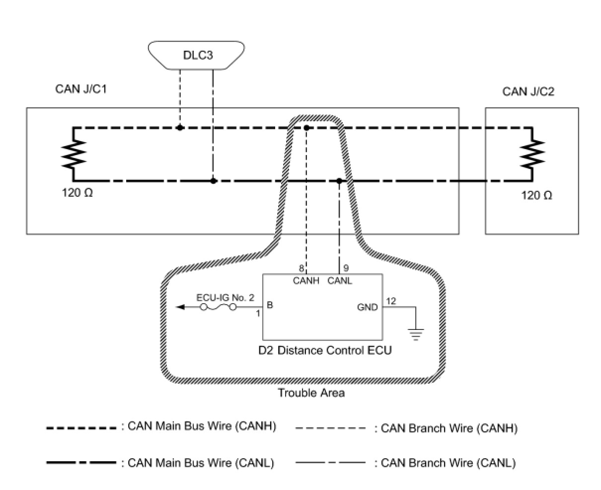 NG -- REPAIR OR REPLACE DISTANCE CONTROL ECU BRANCH WIRE OR CONNECTOR (CAN-H, CAN-L)