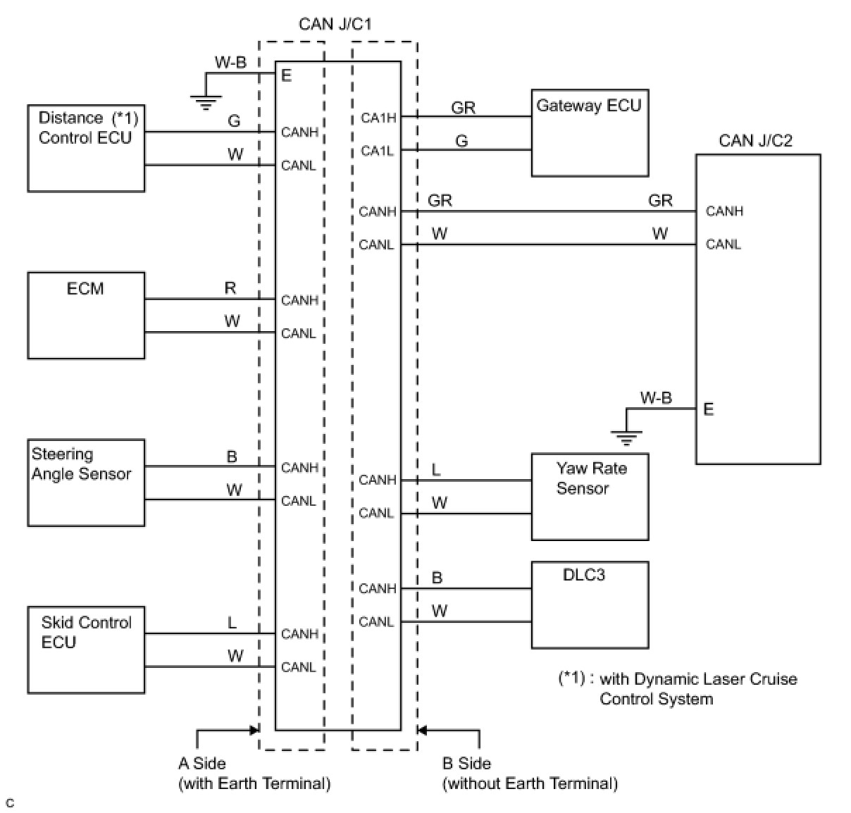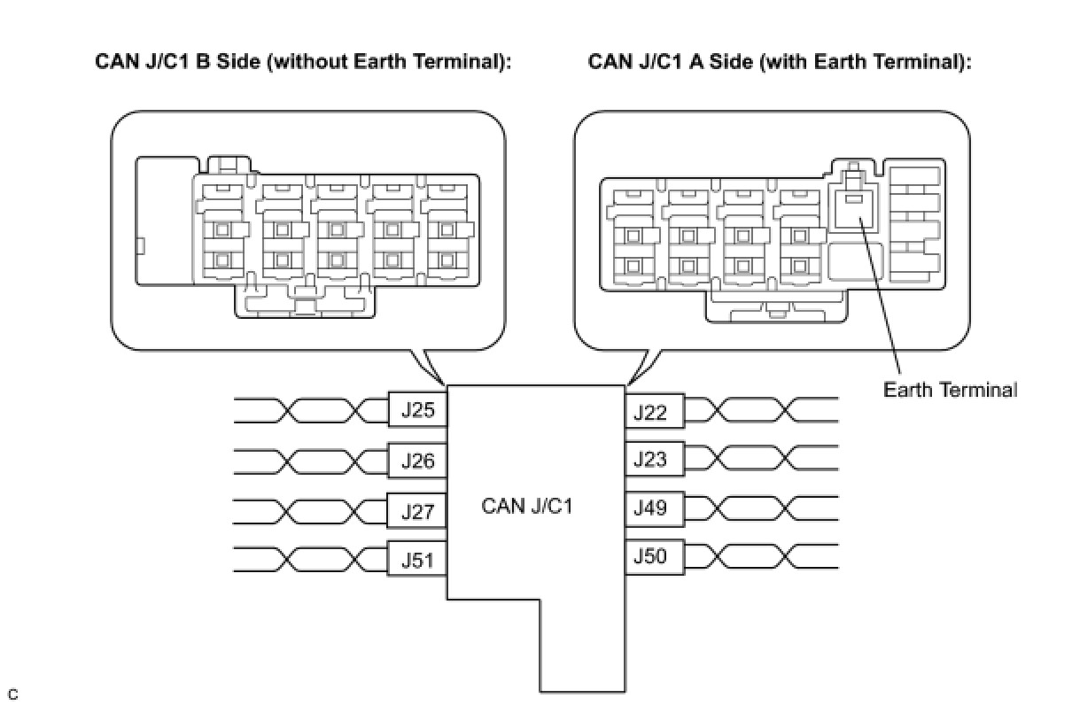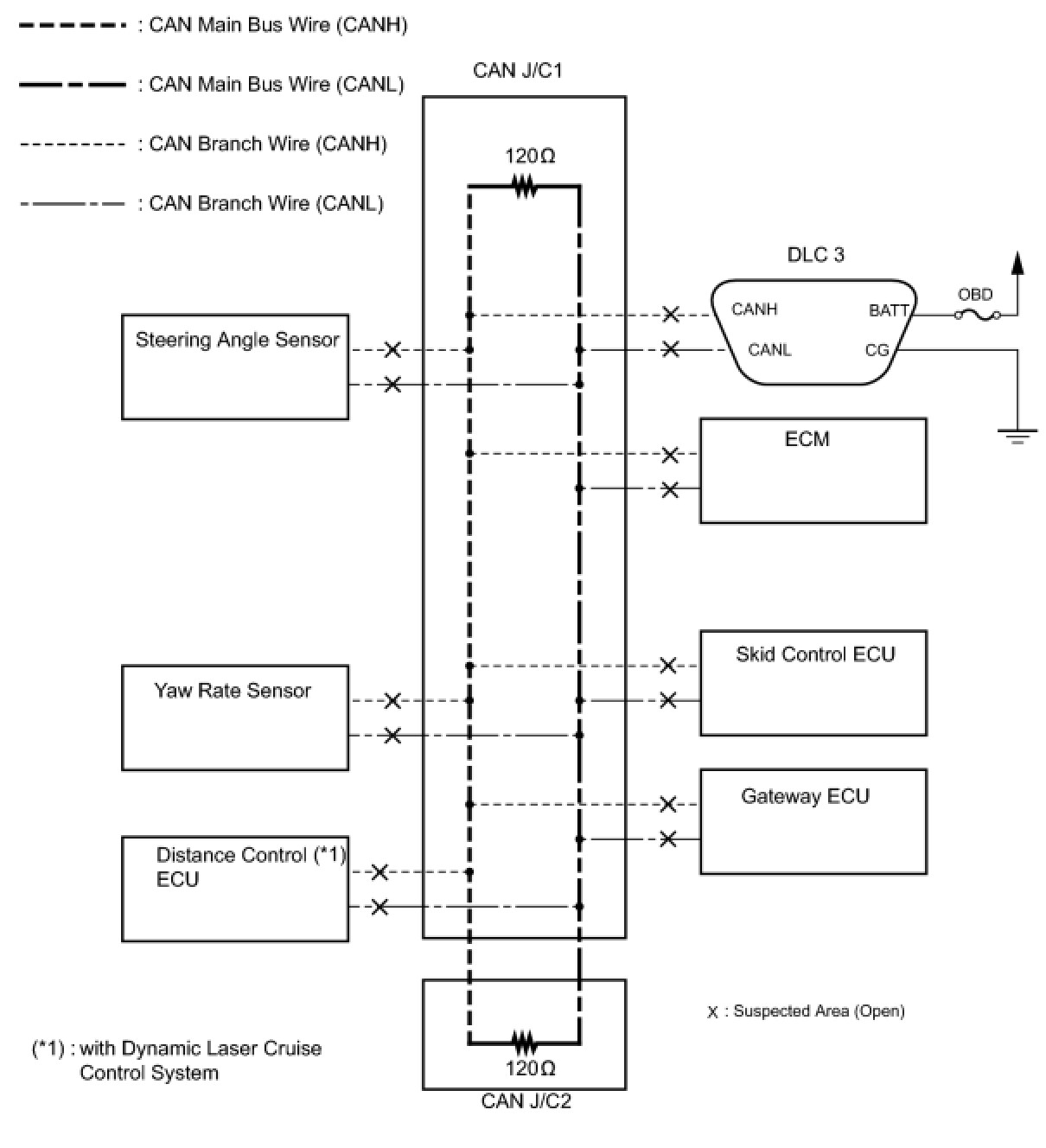 If some ECUs and sensors are not displayed on the "CAN Bus Check" screen of the Techstream and some ECUs and sensors repeatedly appear and disappear from the screen when the CAN main bus wires are normal (there is no open, short, short to B+, or short to GND in the main bus wires), there may be an open circuit in either of the CAN branch wires.