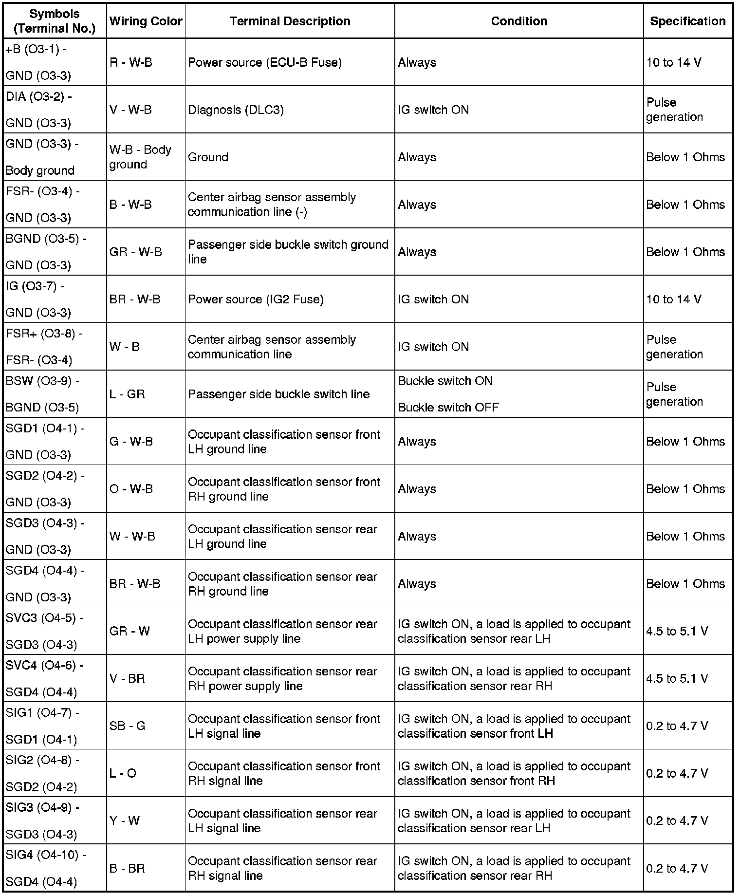 SUPPLEMENTAL RESTRAINT SYSTEM: OCCUPANT CLASSIFICATION SYSTEM: TERMINALS OF ECU