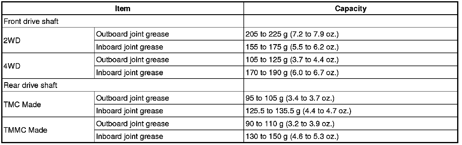 PREPARATION: DRIVE SHAFT: LUBRICANT