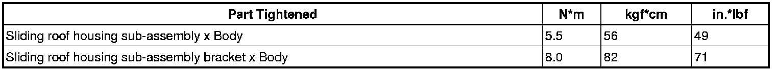 SERVICE SPECIFICATIONS: SLIDING ROOF: TORQUE SPECIFICATIONS