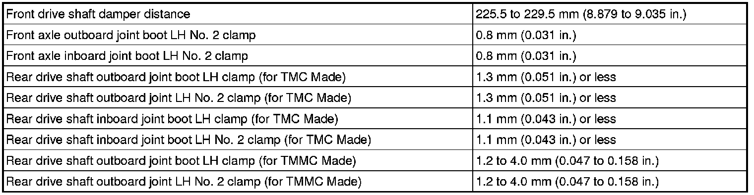SERVICE SPECIFICATIONS: DRIVE SHAFT: SERVICE DATA