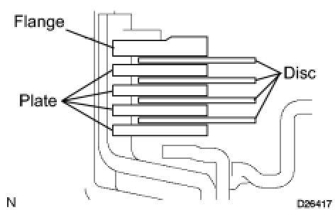 Make sure that the plates, discs, and flange are installed as shown in the illustration.