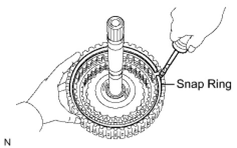 (c) Using a screwdriver, install the snap ring.