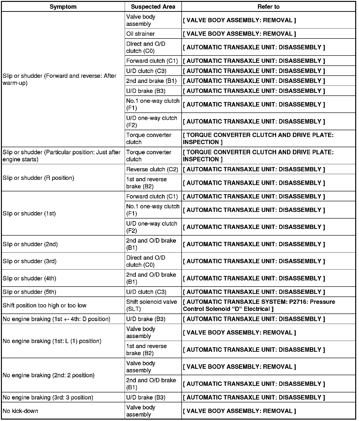 U151E AUTOMATIC TRANSAXLE: AUTOMATIC TRANSAXLE SYSTEM: PROBLEM SYMPTOMS TABLE