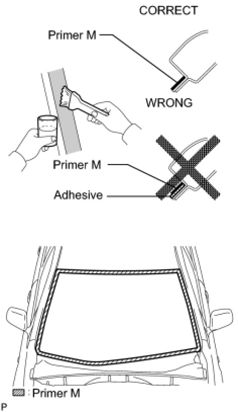 (d) Using a brush or sponge, coat the edge of the glass and the contact surface with Primer G.