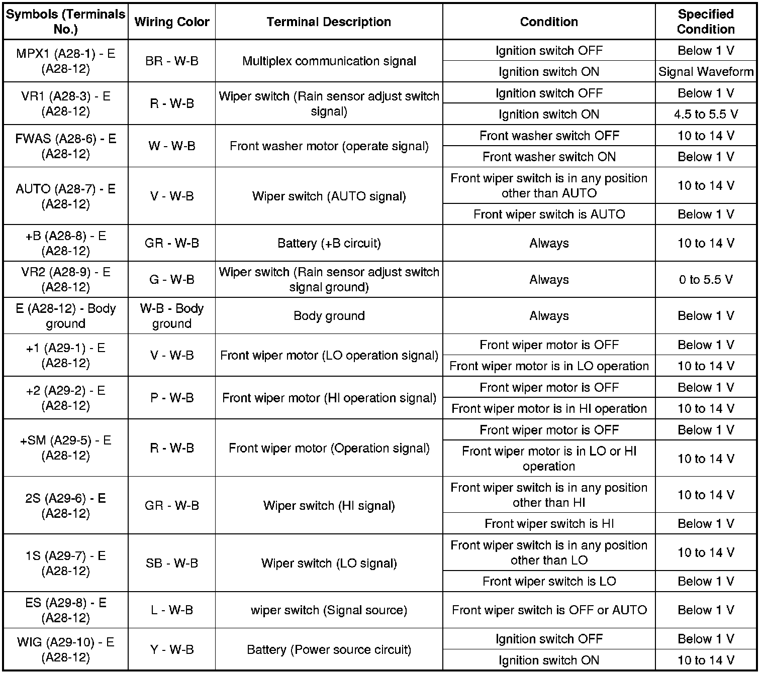 WIPER AND WASHER: WIPER AND WASHER SYSTEM: TERMINALS OF ECU
