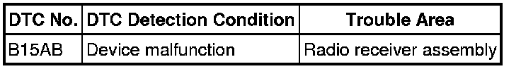 This DTC is stored when a malfunction occurs in the radio receiver assembly (A/C control panel).
