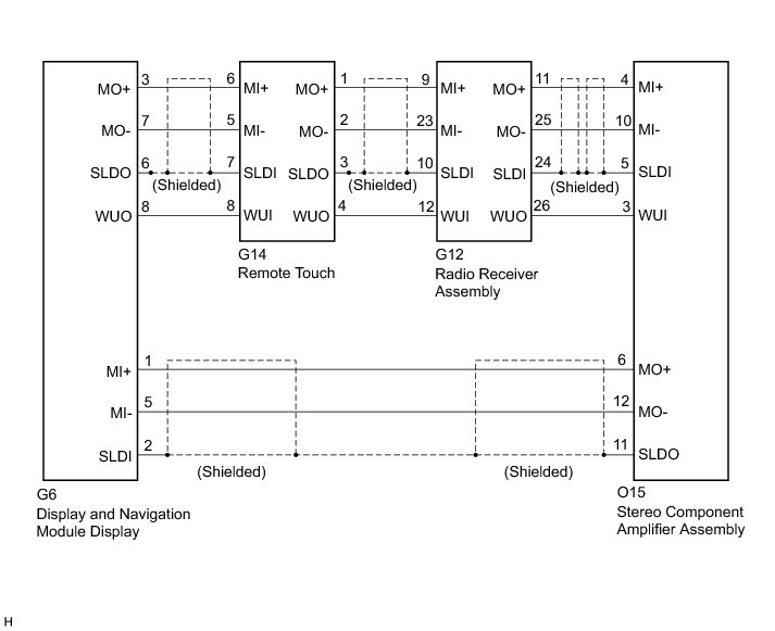 (1) Check if the MOST communication line connector between the remote touch and radio receiver assembly have any connection problems Electronic Circuit Inspection Procedure.