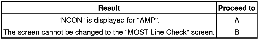 (1) Check if the MOST communication line connector between the stereo component amplifier assembly and multi-display controller sub-assembly have any connection problems Electronic Circuit Inspection Procedure.