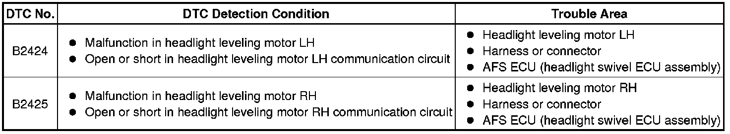 LIGHTING (EXT): LIGHTING SYSTEM: B2424,B2425: Headlight Leveling Motor LH Communication Malfunction